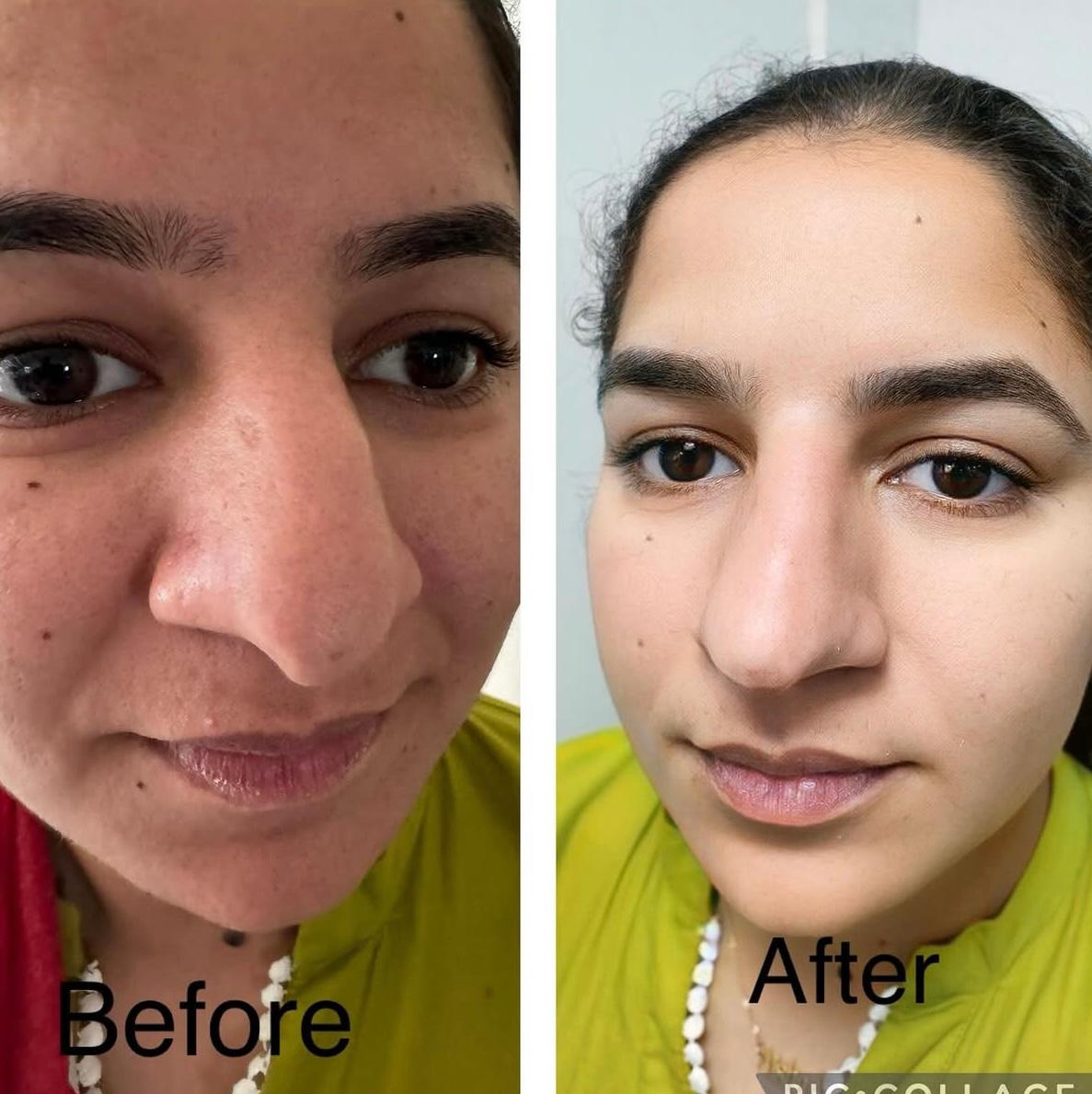 Using hyaluronic acid based dermal filler can help improve the appearance of the nose. Using precise placement, in specific points of the nose allows the nose bridge to be straightened, contoured, nose tip to be lifted and sharpened. Overall the nose looks slimmer, shorter and lifted. This procedure is an alternative to surgery which is much more invasive.